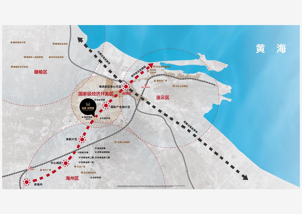 南連海州區(qū),東接連云區(qū),西面贛榆區(qū),項(xiàng)目周邊公交2路、58路、59路、60路、901路、902路、環(huán)環(huán)相通。市郊列車,BRT路線-B20與體育中心站交匯,縱橫通達(dá)的立體交通路網(wǎng),暢達(dá)全城。